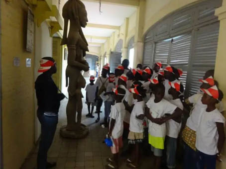 Tous dans l’enceinte du Musée National du Costume de Grand-Bassam pour savourer une panoplie d’objets ancestraux avec une tumulte d’enfants qui manifestaient leurs engouements face à ses bijoux historiques et nos assistants ont pu mettre de l’ordre afin de pouvoir parfaire ce programme de visite culturelle.